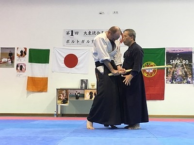 合氣柔術無傳塾飯田は何もしていないに(刀の柄を差したり)片や刀の柄を握っているOisinは合氣が掛かって固まっている様をご覧下さい。(合氣の効用)