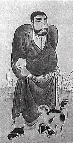 服部英龍筆「薩摩で大を連れ歩く西郷隆盛」肖像