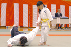 2005 年5 月29 日(日)、アメリカ17 名、ドイツ16 名、国内会派13 団体及び無傳塾本部・石狩支部・福井県支部が一堂に会し、老いも若きも、胸がドキドキ心がワクワクする夢舞台が北海道総合体育センター“きたえーる”サブアリーナにおいて開塾五周年に相応しい盛大な演武大会であった。