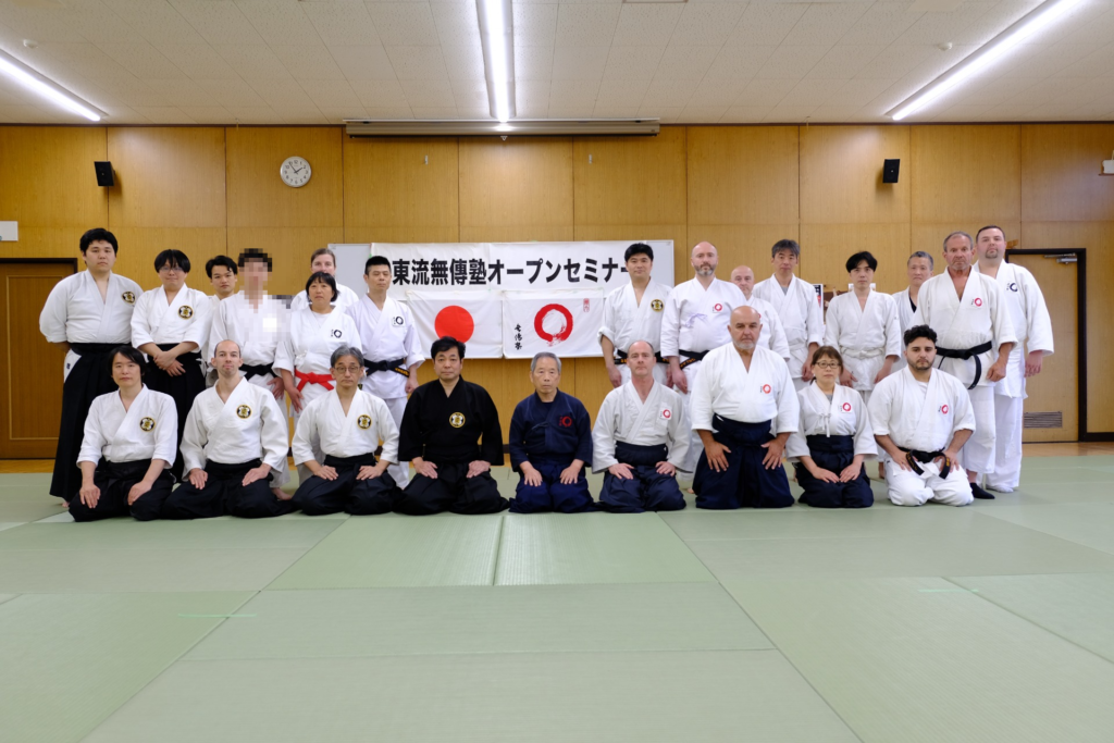 無傳塾は2001年に飯田宏雄師範が創設した大東流の団体です。飯田師範は幸道会出身で、堀川幸道先生の晩年に直接師事。札幌を本拠地としながら、アイルンドやアメリカ、ポルトガルにも支部を持つ国際的な組織へと発展しています。今年は創立25周年という節目の年。これを記念し、初の合宿を開催するに至りました。合宿は7日間にわたり、土曜日には外部に門戸を開くオープンセミナーが行われました。
